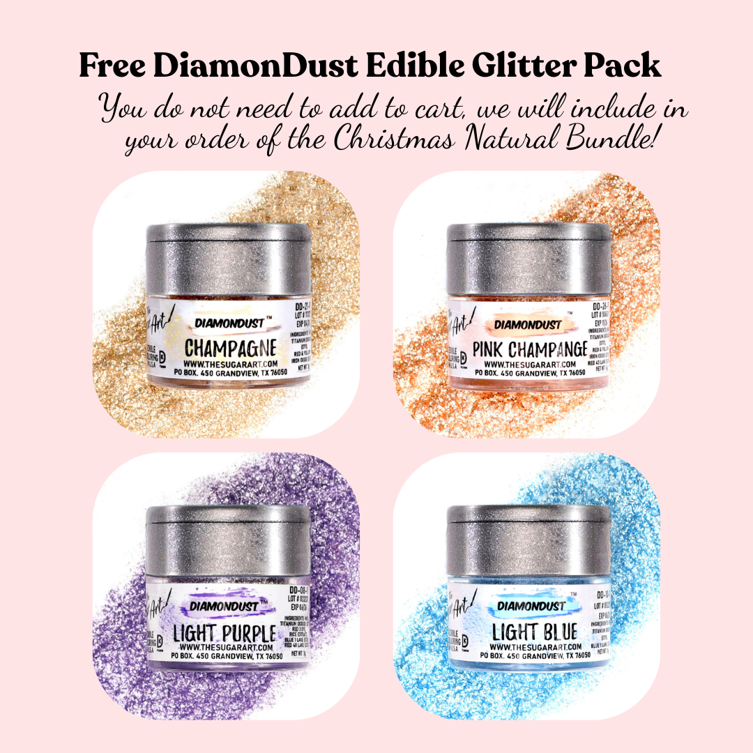 With every purchase of the Christmas Natural Bundle - you will receive a 4-Pack of Edible Glitters (see second image for details). You do not need to add this pack to your cart, you will automatically receive it in your order! We will take care of it! :)